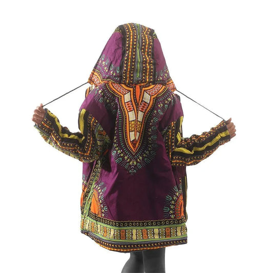 Traditional Dashiki Hoodie: Purple