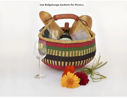 PromotionMedium Bolga Market Basket with Leather Handle (Assorted Colors)