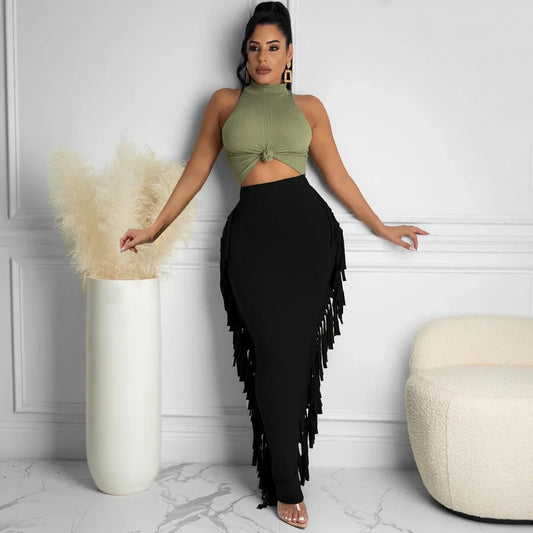 Elegance Ankle-Length Tassel Skirt