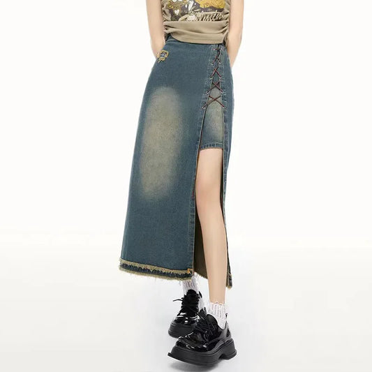 Slit Vintage Denim Maxi Skirt