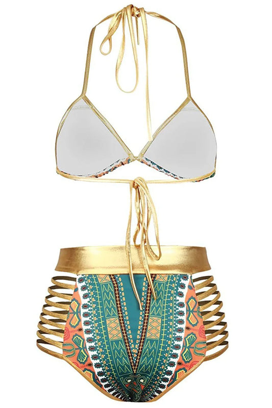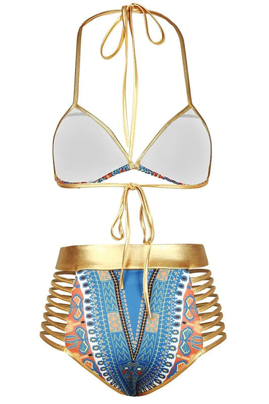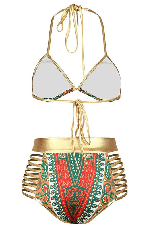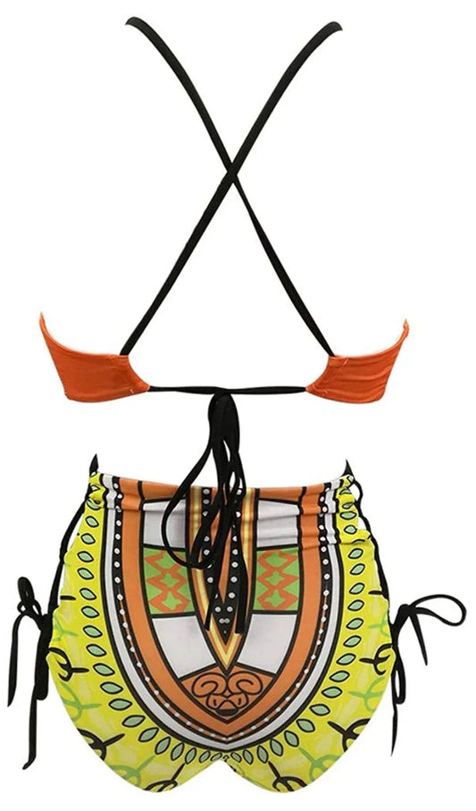 Dashiki Printed Two Pieces Bikini Swimwear Sleeveless Monokini Bathing Suit