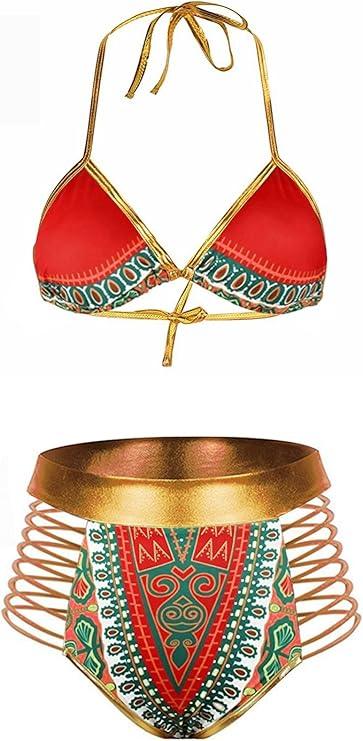 Women African Print Bikini Set Swimwear Push-Up Padded Bra Swimsuit Beachwear