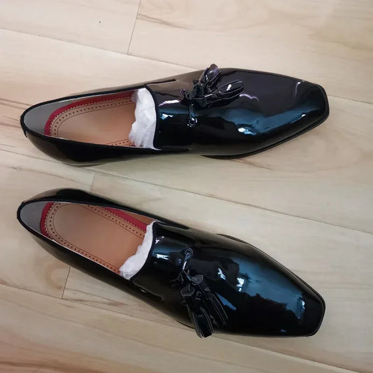 Men's Black Patent Leather Loafers: Stylish Tassel Shoes for Casual and Dress Wear