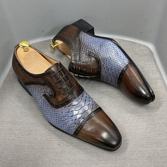 Real Leather Dress Shoes Handmade Snake Print Pointed