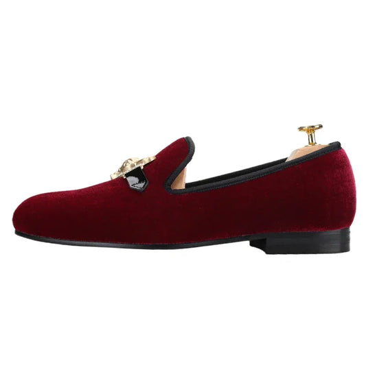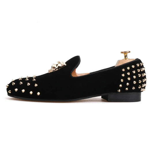 Men's Velvet Shoes: Stylish Slip-On Loafers with Gold Tiger Buckle and Spikes, Perfect for Fashion Parties and Casual Luxury