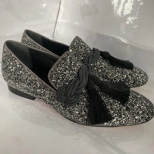 Classic Formal Italian Glitter Loafers: Plus Size Men's Sequin Tassel Dress Shoes for Weddings