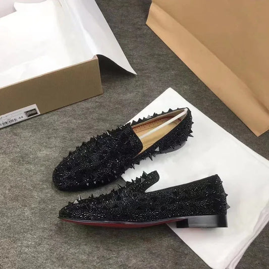 Handcrafted Luxury Men's Black Rhinestone Loafers: Red Bottom Party & Wedding Shoes