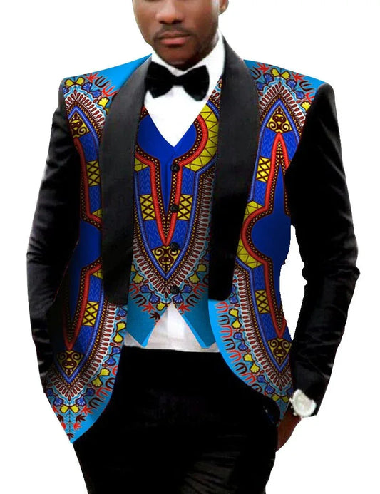 MEN'S PRINTED DASHIKI BLAZER MEN JACKET + VEST SLIM SUITS
