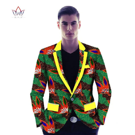 Men's Printed Dashiki Blazer Men Jacket + Vest Slim Suits