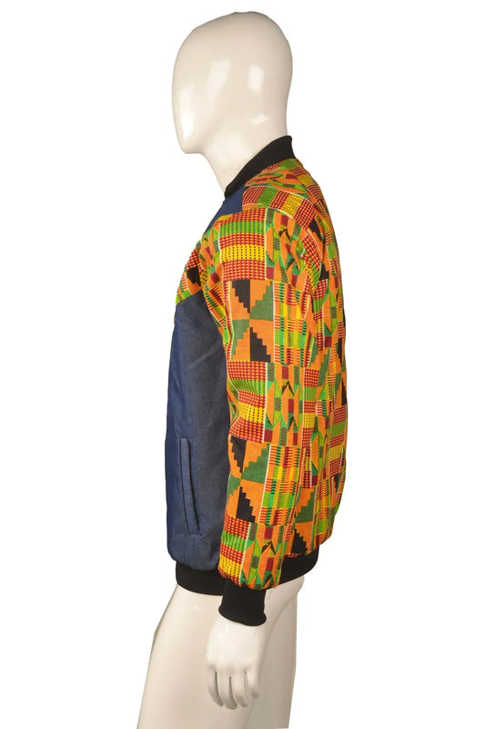 Kente Denim Unisex African Bomber Jacket
