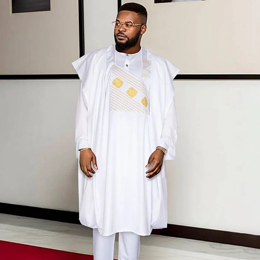 Robe shirt pant 3 pcs suit: Men's embroidery agbada