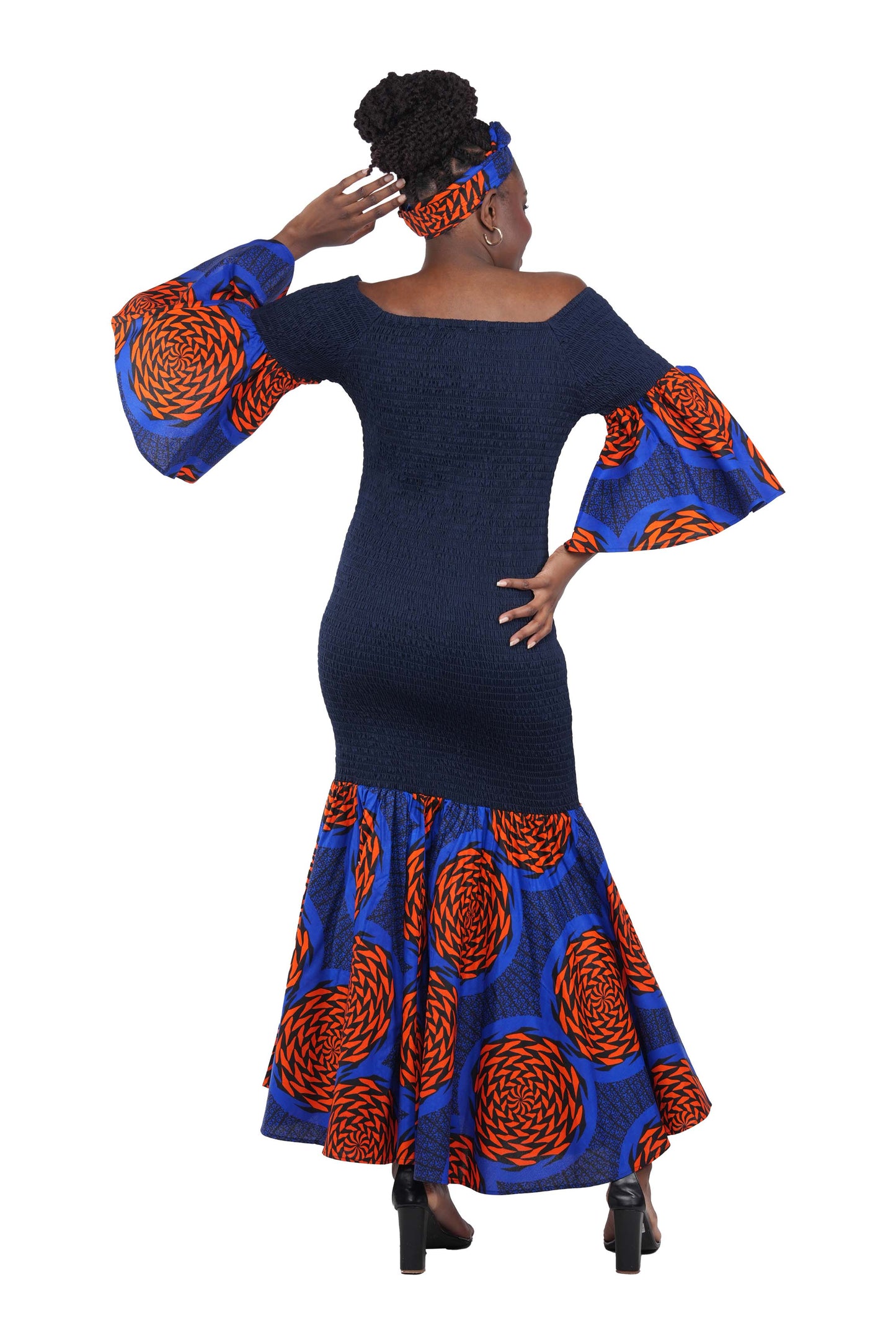 This dress features a one-of-a-kind mermaid cut that accentuates your curves while offering unparalleled comfort. Its vibrant African patterns bring a touch of exotic beauty to your wardrobe. Whether it's a wedding, gala, or dinner date, you'll always be the belle of the ball. Elevate your style and feel extraordinary.