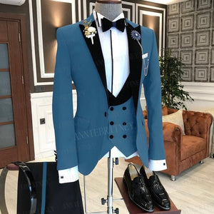 BLACK FORMAL SLIM SUIT FOR MEN 3 PIECES BLAZER JACKET