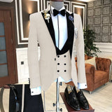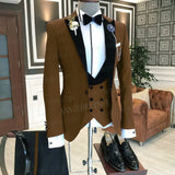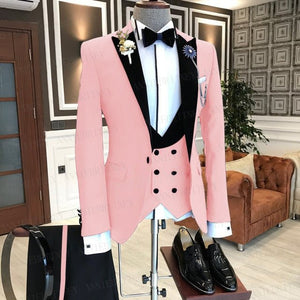 The appropriate setting for this outfit is a wedding, with a smart casual style that is suitable for both spring and autumn. The material is primarily made of cotton, along with other fabrics such as polyester. The fit of the suit is slim, with a zipper fly for the pants and a single-breasted closure for all three pieces (jacket, pants, and vest).